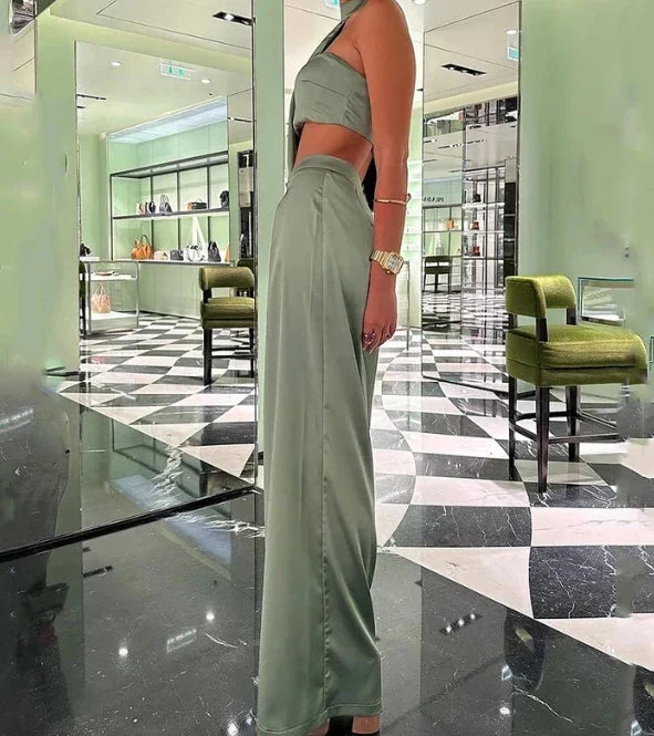 Ensemble deux pièces : Soutien-gorge et pantalon assortis pour une tenue harmonieuse et stylée.