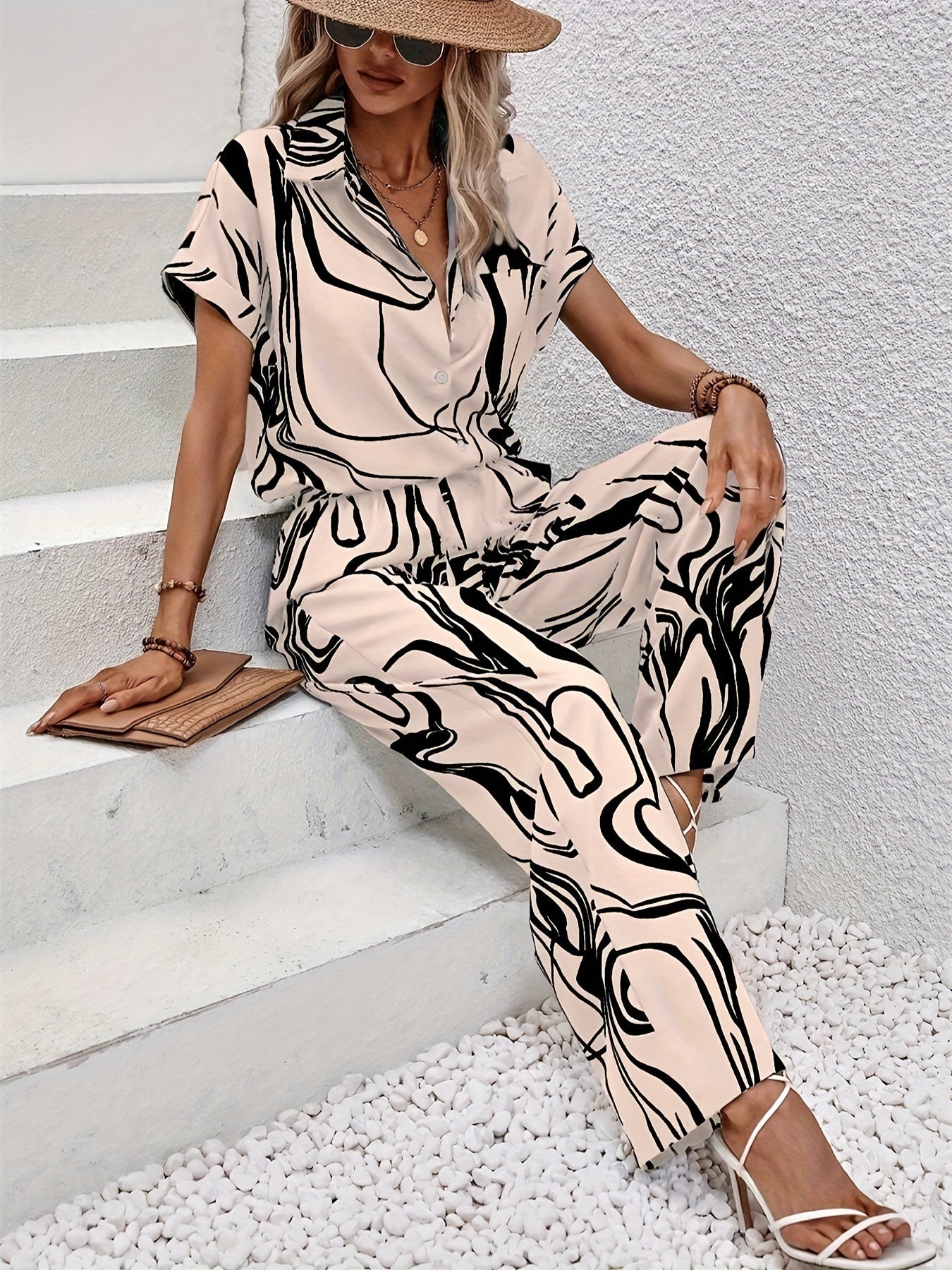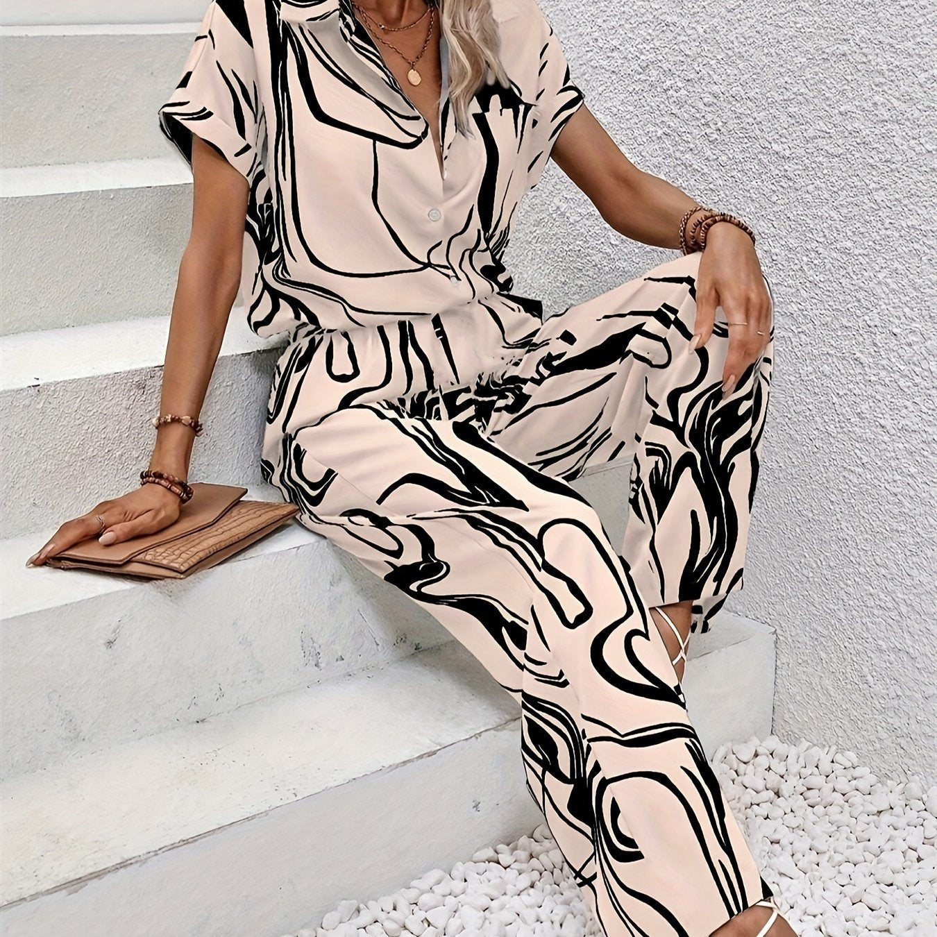 Pourquoi choisir cet ensemble ? L'Ensemble Chemise Décontractée & Pantalon Large Ofelia est un indispensable pour toute femme soucieuse de la mode, offrant style et confort pendant les mois plus chauds. Restez fraîche et élégante, que ce soit au travail ou lors de vos sorties du week-end !